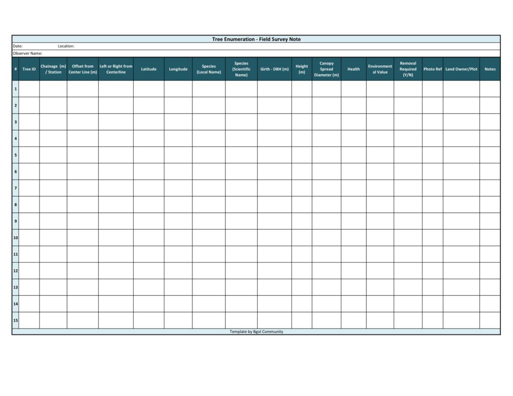 Urban forestry, plantation management, and ecological assessments all begin with data. The Tree Enumeration Field Book offers a clear format for recording: